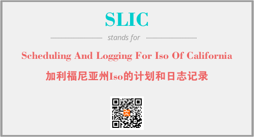 上述内容是“Scheduling And Logging For Iso Of California”作为“SLIC”的缩写,解释为“加利福尼亚州Iso的计划和日志记录”时的信息,以及英文缩略词SLIC所代表的英文单词,其对应的中文拼音、详细解释以及在英文中的流行度和相关分类、应用领域及应用示例等。