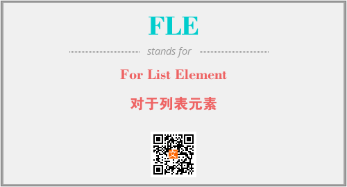 上述内容是“For List Element”作为“FLE”的缩写,解释为“对于列表元素”时的信息,以及英文缩略词FLE所代表的英文单词,其对应的中文拼音、详细解释以及在英文中的流行度和相关分类、应用领域及应用示例等。