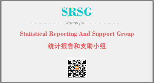 上述内容是“Statistical Reporting And Support Group”作为“SRSG”的缩写,解释为“统计报告和支助小组”时的信息,以及英文缩略词SRSG所代表的英文单词,其对应的中文拼音、详细解释以及在英文中的流行度和相关分类、应用领域及应用示例等。