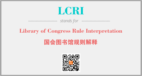 英文缩略词“LCRI”经常作为“Library of Congress Rule Interpretation”的英文缩写来使用,中文表示:“国会图书馆规则解释”。本文将详细介绍英文缩写词LCRI所代表英文单词,其对应的中文拼音、详细解释以及在英语中的流行度。此外,还有关于缩略词LCRI的分类、应用领域及相关应用示例等。