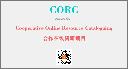 上述内容是“Cooperative Online Resource Cataloguing”作为“CORC”的缩写,解释为“合作在线资源编目”时的信息,以及英文缩略词CORC所代表的英文单词,其对应的中文拼音、详细解释以及在英文中的流行度和相关分类、应用领域及应用示例等。