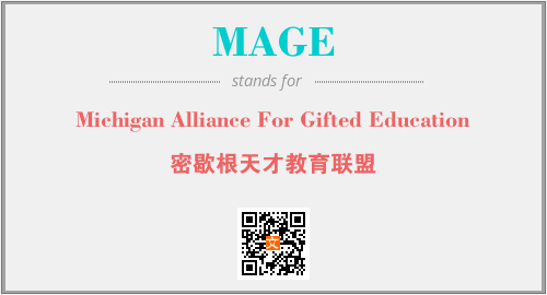 上述内容是“Michigan Alliance For Gifted Education”作为“MAGE”的缩写,解释为“密歇根天才教育联盟”时的信息,以及英文缩略词MAGE所代表的英文单词,其对应的中文拼音、详细解释以及在英文中的流行度和相关分类、应用领域及应用示例等。