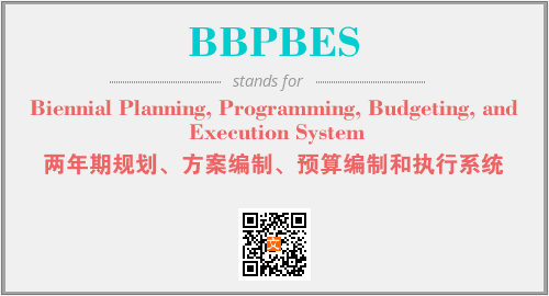 上述内容是“Biennial Planning, Programming, Budgeting, and Execution System”作为“BBPBES”的缩写,解释为“两年期规划、方案编制、预算编制和执行系统”时的信息,以及英文缩略词BBPBES所代表的英文单词,其对应的中文拼音、详细解释以及在英文中的流行度和相关分类、应用领域及应用示例等。