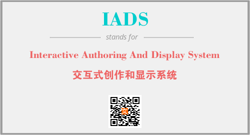 上述内容是“Interactive Authoring And Display System”作为“IADS”的缩写,解释为“交互式创作和显示系统”时的信息,以及英文缩略词IADS所代表的英文单词,其对应的中文拼音、详细解释以及在英文中的流行度和相关分类、应用领域及应用示例等。