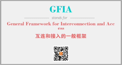 上述内容是“General Framework for Interconnection and Access”作为“GFIA”的缩写,解释为“互连和接入的一般框架”时的信息,以及英文缩略词GFIA所代表的英文单词,其对应的中文拼音、详细解释以及在英文中的流行度和相关分类、应用领域及应用示例等。