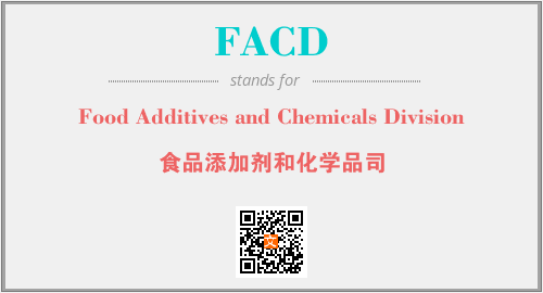 上述内容是“Food Additives and Chemicals Division”作为“FACD”的缩写,解释为“食品添加剂和化学品司”时的信息,以及英文缩略词FACD所代表的英文单词,其对应的中文拼音、详细解释以及在英文中的流行度和相关分类、应用领域及应用示例等。