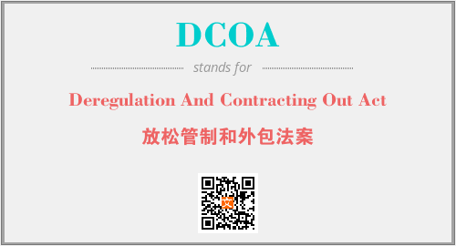 以上为Deregulation And Contracting Out Act英文缩略词DCOA的中文解释,以及该英文缩写在英语的流行度、分类和应用领域方面的信息。