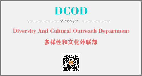 英文缩略词“DCOD”经常作为“Diversity And Cultural Outreach Department”的英文缩写来使用,中文表示:“多样性和文化外联部”。本文将详细介绍英文缩写词DCOD所代表英文单词,其对应的中文拼音、详细解释以及在英语中的流行度。此外,还有关于缩略词DCOD的分类、应用领域及相关应用示例等。
