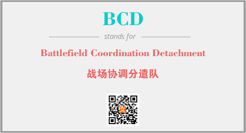 上述内容是“Battlefield Coordination Detachment”作为“BCD”的缩写,解释为“战场协调分遣队”时的信息,以及英文缩略词BCD所代表的英文单词,其对应的中文拼音、详细解释以及在英文中的流行度和相关分类、应用领域及应用示例等。