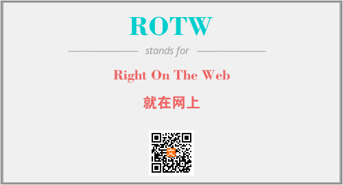 上述内容是“Right On The Web”作为“ROTW”的缩写,解释为“就在网上”时的信息,以及英文缩略词ROTW所代表的英文单词,其对应的中文拼音、详细解释以及在英文中的流行度和相关分类、应用领域及应用示例等。