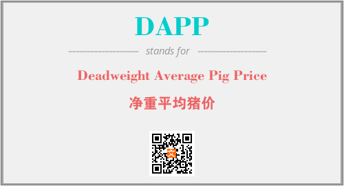 英文缩略词“DAPP”经常作为“Deadweight Average Pig Price”的英文缩写来使用,中文表示:“净重平均猪价”。本文将详细介绍英文缩写词DAPP所代表英文单词,其对应的中文拼音、详细解释以及在英语中的流行度。此外,还有关于缩略词DAPP的分类、应用领域及相关应用示例等。