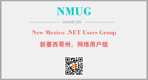 英文缩略词“NMUG”经常作为“New Mexico .NET Users Group”的英文缩写来使用,中文表示:“新墨西哥州。网络用户组”。本文将详细介绍英文缩写词NMUG所代表英文单词,其对应的中文拼音、详细解释以及在英语中的流行度。此外,还有关于缩略词NMUG的分类、应用领域及相关应用示例等。