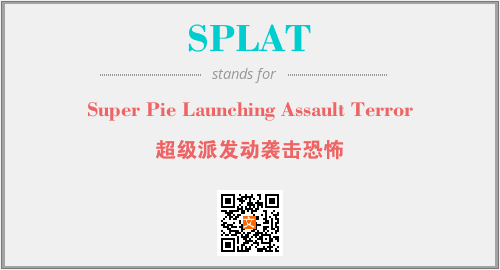 上述内容是“Super Pie Launching Assault Terror”作为“SPLAT”的缩写,解释为“超级派发动袭击恐怖”时的信息,以及英文缩略词SPLAT所代表的英文单词,其对应的中文拼音、详细解释以及在英文中的流行度和相关分类、应用领域及应用示例等。