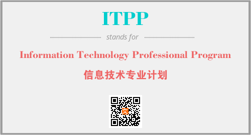 英文缩略词“ITPP”经常作为“Information Technology Professional Program”的英文缩写来使用,中文表示:“信息技术专业计划”。本文将详细介绍英文缩写词ITPP所代表英文单词,其对应的中文拼音、详细解释以及在英语中的流行度。此外,还有关于缩略词ITPP的分类、应用领域及相关应用示例等。