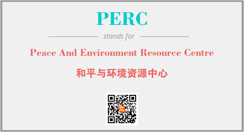 上述内容是“Peace And Environment Resource Centre”作为“PERC”的缩写,解释为“和平与环境资源中心”时的信息,以及英文缩略词PERC所代表的英文单词,其对应的中文拼音、详细解释以及在英文中的流行度和相关分类、应用领域及应用示例等。
