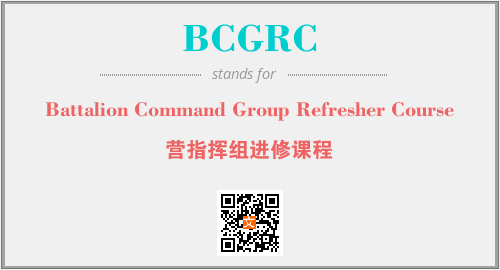 英文缩略词“BCGRC”经常作为“Battalion Command Group Refresher Course”的英文缩写来使用,中文表示:“营指挥组进修课程”。本文将详细介绍英文缩写词BCGRC所代表英文单词,其对应的中文拼音、详细解释以及在英语中的流行度。此外,还有关于缩略词BCGRC的分类、应用领域及相关应用示例等。