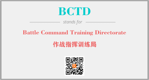 上述内容是“Battle Command Training Directorate”作为“BCTD”的缩写,解释为“作战指挥训练局”时的信息,以及英文缩略词BCTD所代表的英文单词,其对应的中文拼音、详细解释以及在英文中的流行度和相关分类、应用领域及应用示例等。