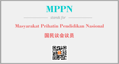 上述内容是“Masyarakat Prihatin Pendidikan Nasional”作为“MPPN”的缩写,解释为“国民议会议员”时的信息,以及英文缩略词MPPN所代表的英文单词,其对应的中文拼音、详细解释以及在英文中的流行度和相关分类、应用领域及应用示例等。