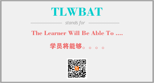 上述内容是“The Learner Will Be Able To ....”作为“TLWBAT”的缩写,解释为“学员将能够。。。。”时的信息,以及英文缩略词TLWBAT所代表的英文单词,其对应的中文拼音、详细解释以及在英文中的流行度和相关分类、应用领域及应用示例等。