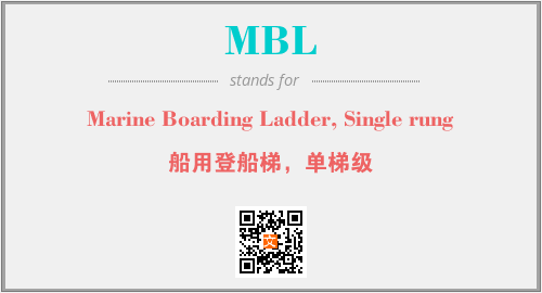 英文缩略词“MBL”经常作为“Marine Boarding Ladder, Single rung”的英文缩写来使用,中文表示:“船用登船梯,单梯级”。本文将详细介绍英文缩写词MBL所代表英文单词,其对应的中文拼音、详细解释以及在英语中的流行度。此外,还有关于缩略词MBL的分类、应用领域及相关应用示例等。