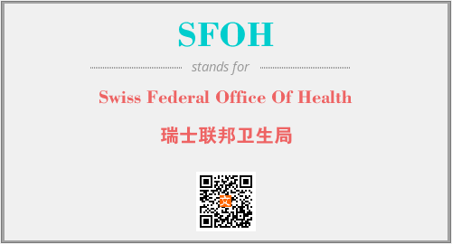 上述内容是“Swiss Federal Office Of Health”作为“SFOH”的缩写,解释为“瑞士联邦卫生局”时的信息,以及英文缩略词SFOH所代表的英文单词,其对应的中文拼音、详细解释以及在英文中的流行度和相关分类、应用领域及应用示例等。