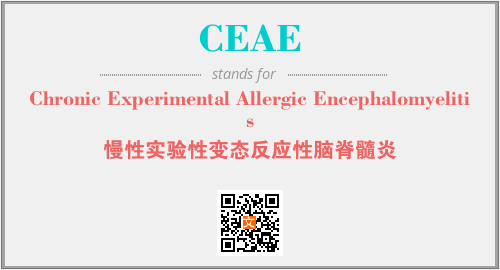 英文缩略词“CEAE”经常作为“Chronic Experimental Allergic Encephalomyelitis”的英文缩写来使用,中文表示:“慢性实验性变态反应性脑脊髓炎”。本文将详细介绍英文缩写词CEAE所代表英文单词,其对应的中文拼音、详细解释以及在英语中的流行度。此外,还有关于缩略词CEAE的分类、应用领域及相关应用示例等。