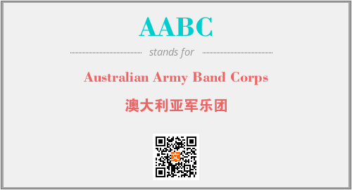 上述内容是“Australian Army Band Corps”作为“AABC”的缩写,解释为“澳大利亚军乐团”时的信息,以及英文缩略词AABC所代表的英文单词,其对应的中文拼音、详细解释以及在英文中的流行度和相关分类、应用领域及应用示例等。