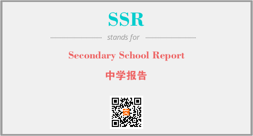 上述内容是“Secondary School Report”作为“SSR”的缩写,解释为“中学报告”时的信息,以及英文缩略词SSR所代表的英文单词,其对应的中文拼音、详细解释以及在英文中的流行度和相关分类、应用领域及应用示例等。