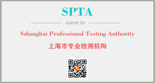 英文缩略词“SPTA”经常作为“Sshanghai Professional Testing Authority”的英文缩写来使用,中文表示:“上海市专业检测机构”。本文将详细介绍英文缩写词SPTA所代表英文单词,其对应的中文拼音、详细解释以及在英语中的流行度。此外,还有关于缩略词SPTA的分类、应用领域及相关应用示例等。