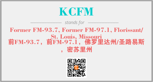 上述内容是“Former FM-93.7, Former FM-97.1, Florissant/St. Louis, Missouri”作为“KCFM”的缩写,解释为“前FM-93.7,前FM-97.1,佛罗里达州/圣路易斯,密苏里州”时的信息,以及英文缩略词KCFM所代表的英文单词,其对应的中文拼音、详细解释以及在英文中的流行度和相关分类、应用领域及应用示例等。