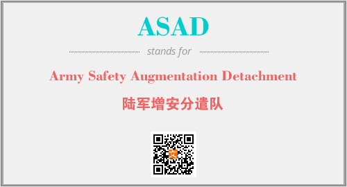 上述内容是“Army Safety Augmentation Detachment”作为“ASAD”的缩写,解释为“陆军增安分遣队”时的信息,以及英文缩略词ASAD所代表的英文单词,其对应的中文拼音、详细解释以及在英文中的流行度和相关分类、应用领域及应用示例等。