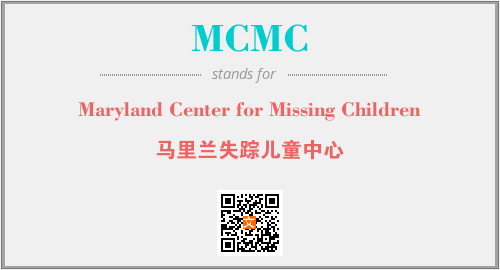 英文缩略词“MCMC”经常作为“Maryland Center for Missing Children”的英文缩写来使用,中文表示:“马里兰失踪儿童中心”。本文将详细介绍英文缩写词MCMC所代表英文单词,其对应的中文拼音、详细解释以及在英语中的流行度。此外,还有关于缩略词MCMC的分类、应用领域及相关应用示例等。
