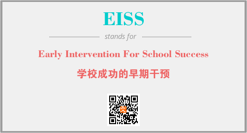 上述内容是“Early Intervention For School Success”作为“EISS”的缩写,解释为“学校成功的早期干预”时的信息,以及英文缩略词EISS所代表的英文单词,其对应的中文拼音、详细解释以及在英文中的流行度和相关分类、应用领域及应用示例等。