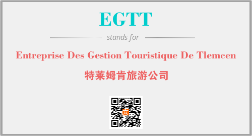 上述内容是“Entreprise Des Gestion Touristique De Tlemcen”作为“EGTT”的缩写,解释为“特莱姆肯旅游公司”时的信息,以及英文缩略词EGTT所代表的英文单词,其对应的中文拼音、详细解释以及在英文中的流行度和相关分类、应用领域及应用示例等。
