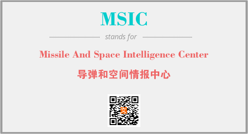 上述内容是“Missile And Space Intelligence Center”作为“MSIC”的缩写,解释为“导弹和空间情报中心”时的信息,以及英文缩略词MSIC所代表的英文单词,其对应的中文拼音、详细解释以及在英文中的流行度和相关分类、应用领域及应用示例等。