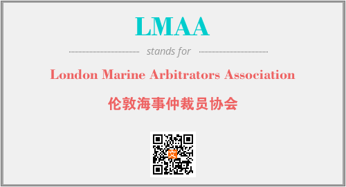 英文缩略词“LMAA”经常作为“London Marine Arbitrators Association”的英文缩写来使用,中文表示:“伦敦海事仲裁员协会”。本文将详细介绍英文缩写词LMAA所代表英文单词,其对应的中文拼音、详细解释以及在英语中的流行度。此外,还有关于缩略词LMAA的分类、应用领域及相关应用示例等。