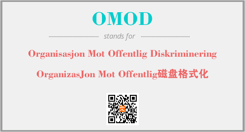 上述内容是“Organisasjon Mot Offentlig Diskriminering”作为“OMOD”的缩写,解释为“OrganizasJon Mot Offentlig磁盘格式化”时的信息,以及英文缩略词OMOD所代表的英文单词,其对应的中文拼音、详细解释以及在英文中的流行度和相关分类、应用领域及应用示例等。