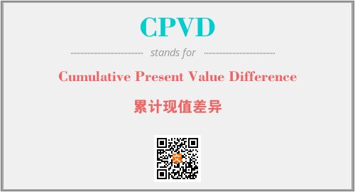上述内容是“Cumulative Present Value Difference”作为“CPVD”的缩写,解释为“累计现值差异”时的信息,以及英文缩略词CPVD所代表的英文单词,其对应的中文拼音、详细解释以及在英文中的流行度和相关分类、应用领域及应用示例等。