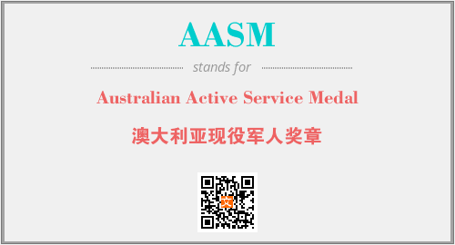 英文缩略词“AASM”经常作为“Australian Active Service Medal”的英文缩写来使用,中文表示:“澳大利亚现役军人奖章”。本文将详细介绍英文缩写词AASM所代表英文单词,其对应的中文拼音、详细解释以及在英语中的流行度。此外,还有关于缩略词AASM的分类、应用领域及相关应用示例等。