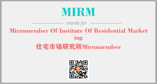 上述内容是“Mirmmember Of Institute Of Residential Marketing”作为“MIRM”的缩写,解释为“住宅市场研究所Mirmmember”时的信息,以及英文缩略词MIRM所代表的英文单词,其对应的中文拼音、详细解释以及在英文中的流行度和相关分类、应用领域及应用示例等。