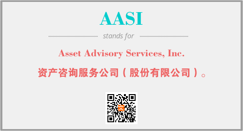 上述内容是“Asset Advisory Services, Inc.”作为“AASI”的缩写,解释为“资产咨询服务公司(股份有限公司)。”时的信息,以及英文缩略词AASI所代表的英文单词,其对应的中文拼音、详细解释以及在英文中的流行度和相关分类、应用领域及应用示例等。