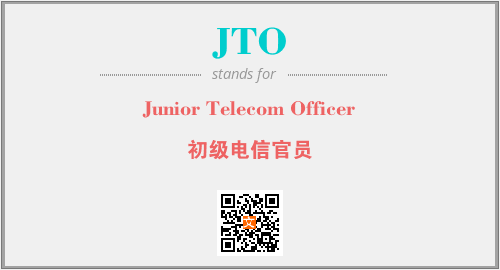 英文缩略词“JTO”经常作为“Junior Telecom Officer”的英文缩写来使用,中文表示:“初级电信官员”。本文将详细介绍英文缩写词JTO所代表英文单词,其对应的中文拼音、详细解释以及在英语中的流行度。此外,还有关于缩略词JTO的分类、应用领域及相关应用示例等。