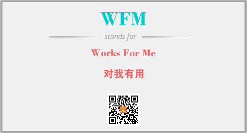 上述内容是“Works For Me”作为“WFM”的缩写,解释为“对我有用”时的信息,以及英文缩略词WFM所代表的英文单词,其对应的中文拼音、详细解释以及在英文中的流行度和相关分类、应用领域及应用示例等。