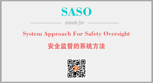 上述内容是“System Approach For Safety Oversight”作为“SASO”的缩写,解释为“安全监督的系统方法”时的信息,以及英文缩略词SASO所代表的英文单词,其对应的中文拼音、详细解释以及在英文中的流行度和相关分类、应用领域及应用示例等。