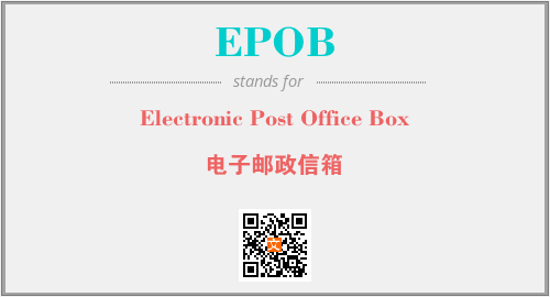 英文缩略词“EPOB”经常作为“Electronic Post Office Box”的英文缩写来使用,中文表示:“电子邮政信箱”。本文将详细介绍英文缩写词EPOB所代表英文单词,其对应的中文拼音、详细解释以及在英语中的流行度。此外,还有关于缩略词EPOB的分类、应用领域及相关应用示例等。