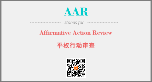 上述内容是“Affirmative Action Review”作为“AAR”的缩写,解释为“平权行动审查”时的信息,以及英文缩略词AAR所代表的英文单词,其对应的中文拼音、详细解释以及在英文中的流行度和相关分类、应用领域及应用示例等。