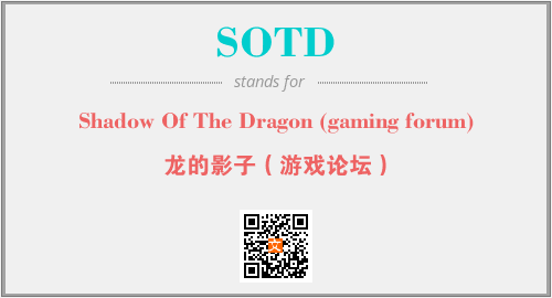 英文缩略词“SOTD”经常作为“Shadow Of The Dragon (gaming forum)”的英文缩写来使用,中文表示:“龙的影子(游戏论坛)”。本文将详细介绍英文缩写词SOTD所代表英文单词,其对应的中文拼音、详细解释以及在英语中的流行度。此外,还有关于缩略词SOTD的分类、应用领域及相关应用示例等。