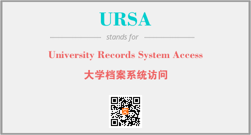 上述内容是“University Records System Access”作为“URSA”的缩写,解释为“大学档案系统访问”时的信息,以及英文缩略词URSA所代表的英文单词,其对应的中文拼音、详细解释以及在英文中的流行度和相关分类、应用领域及应用示例等。