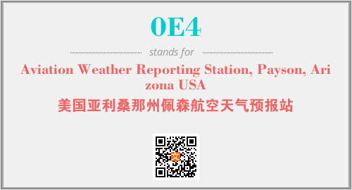 上述内容是“Aviation Weather Reporting Station, Payson, Arizona USA”作为“0E4”的缩写,解释为“美国亚利桑那州佩森航空天气预报站”时的信息,以及英文缩略词0E4所代表的英文单词,其对应的中文拼音、详细解释以及在英文中的流行度和相关分类、应用领域及应用示例等。