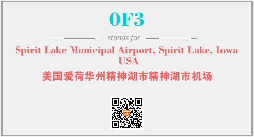 上述内容是“Spirit Lake Municipal Airport, Spirit Lake, Iowa USA”作为“0F3”的缩写,解释为“美国爱荷华州精神湖市精神湖市机场”时的信息,以及英文缩略词0F3所代表的英文单词,其对应的中文拼音、详细解释以及在英文中的流行度和相关分类、应用领域及应用示例等。